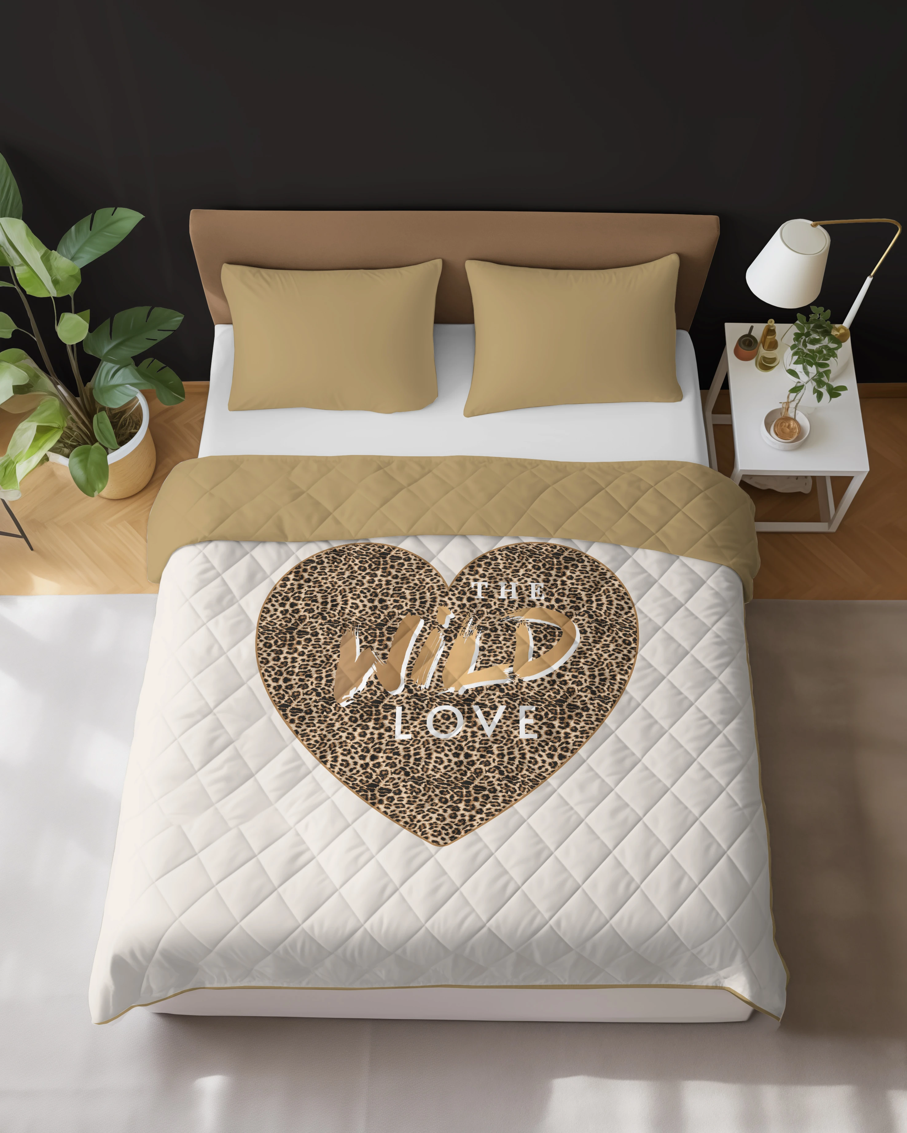 Narzuta Pikowana Dwustronna 220 x 240 cm. Kremowy Złoty Panterka Serce Wild Love NR-K109