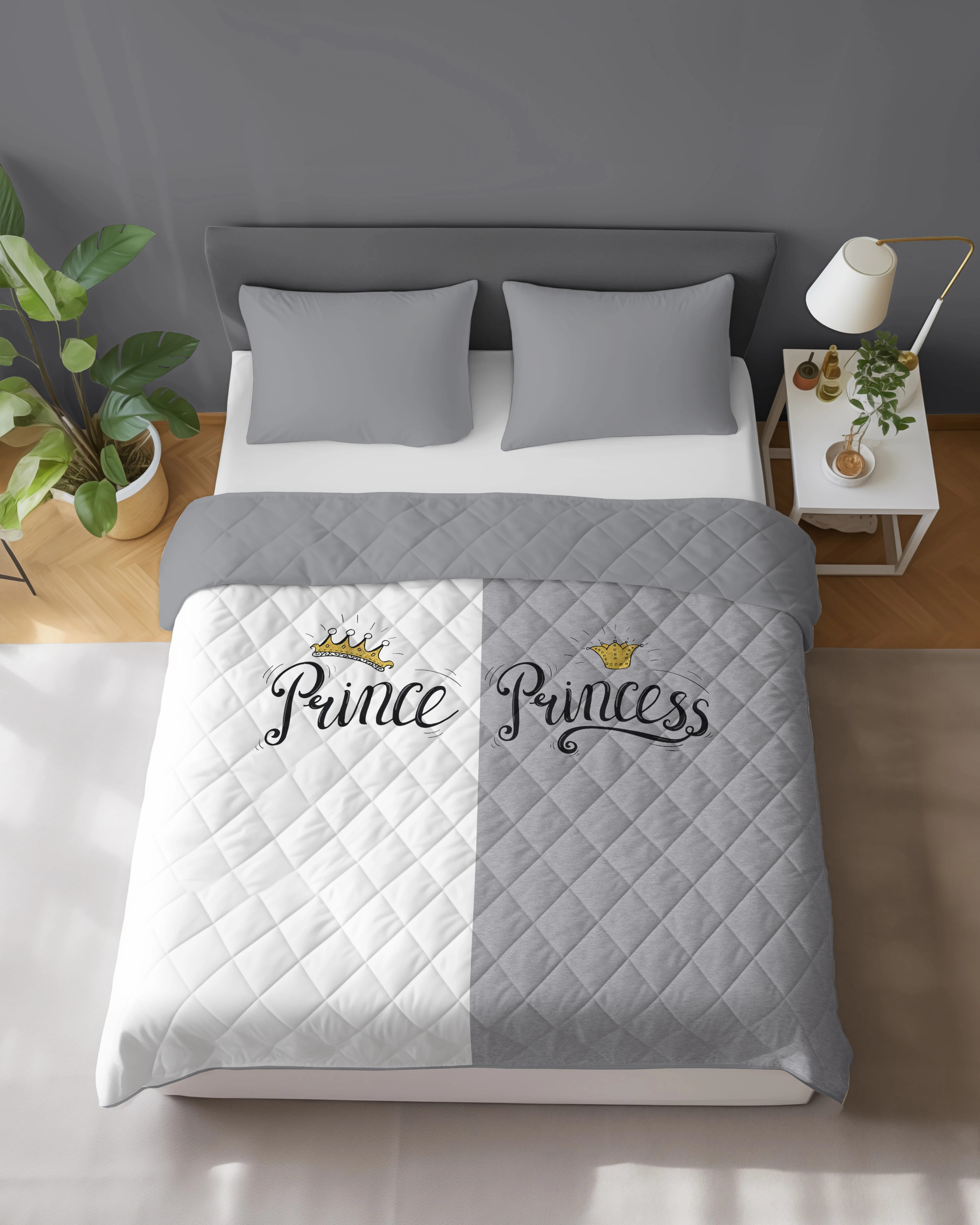 Narzuta Pikowana Dwustronna 200x220 cm. Biały Szary Prince Princess NR-K115