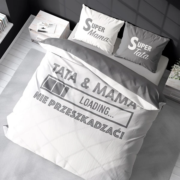 2. Napis “Tata & Mama, Nie Przeszkadzać”: Napis “Tata & Mama, Nie Przeszkadzać” na pościeli dodaje humorystycznego i osobistego akcentu do Twojej sypialni. Jest to subtelne przypomnienie o ważności czasu spędzanego razem jako para.