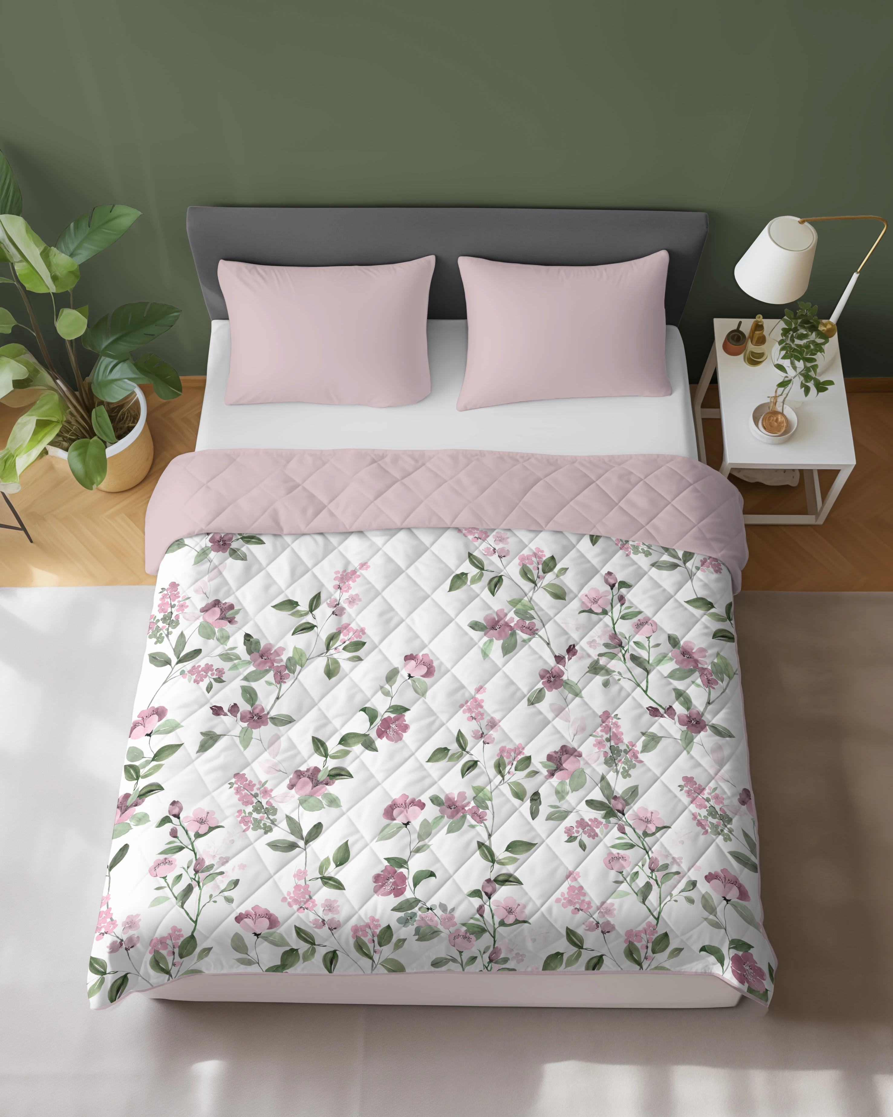 Narzuta Pikowana Dwustronna 220x240 cm. Biała Pudrowa Różowa Kwiaty NR-K117