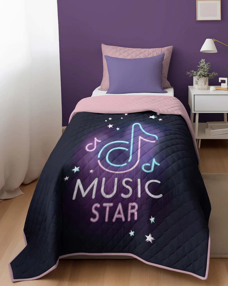 Narzuta Młodzieżowa 170x210 cm. Pikowana Dwustronna Czarny Różowy Music Nutka Muzyka K-99