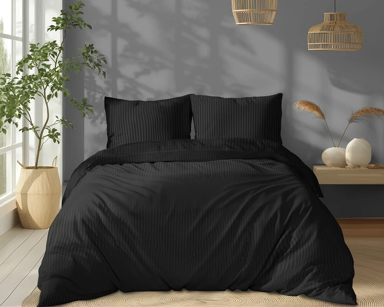 Luksusowy Komplet Pościeli Z Adamaszku Satyna Bawełniana 160x200 cm. Czarny