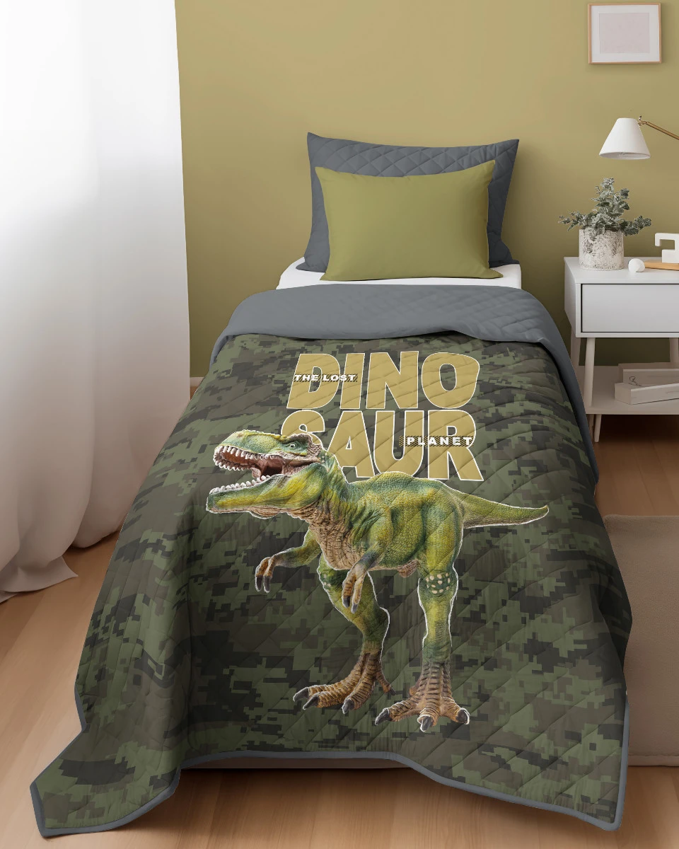 Narzuta Młodzieżowa 170x210 cm. Pikowana Zielony Szary Moro Dinozaur K-86