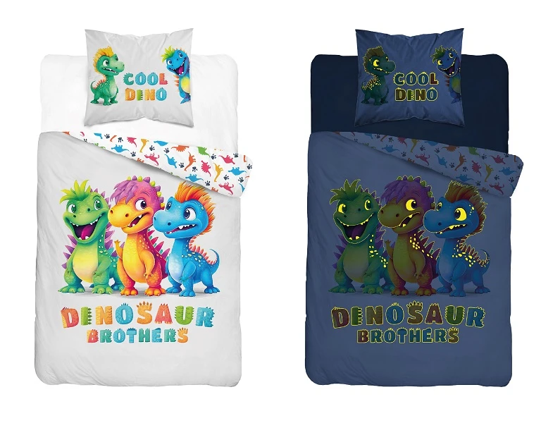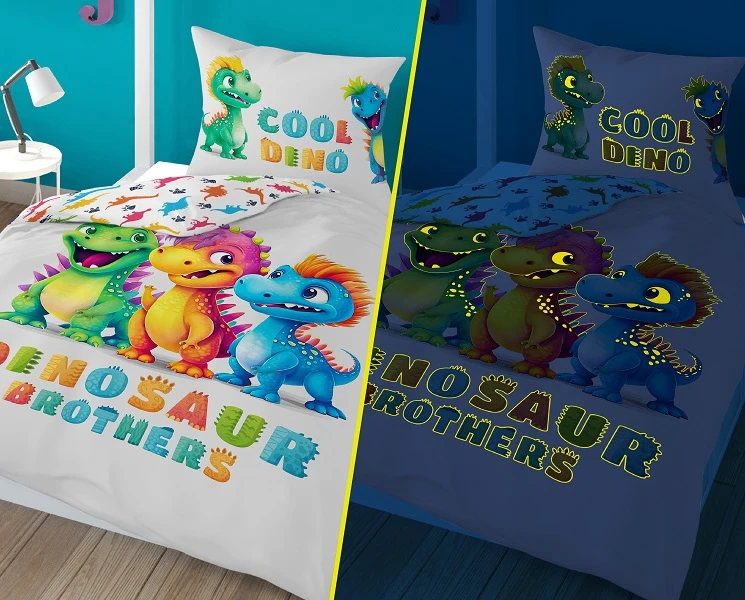 Pościel Dziecięca Świecąca W Ciemności 160x200 cm. Dinusie Małe Kolorowe Dinozaury 4761