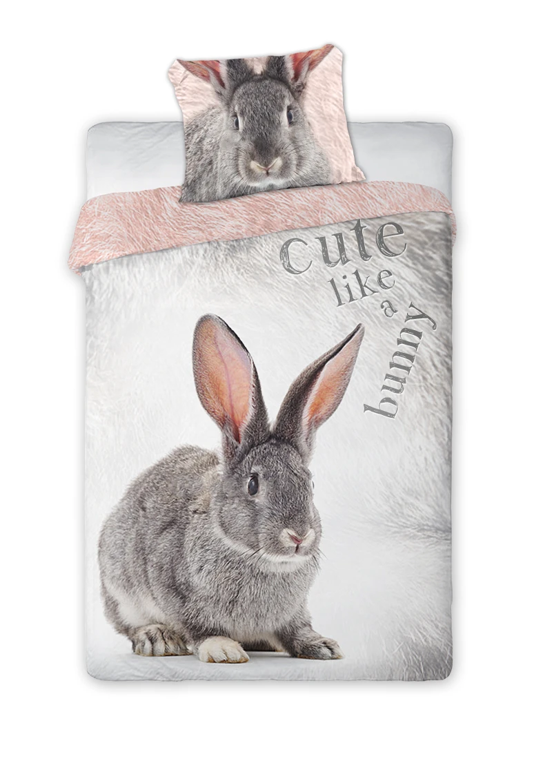 Pościel Młodzieżowa Dla Nastolatka 140x200 cm. Bawełna 100 % Szary Różowy Królik Zając
