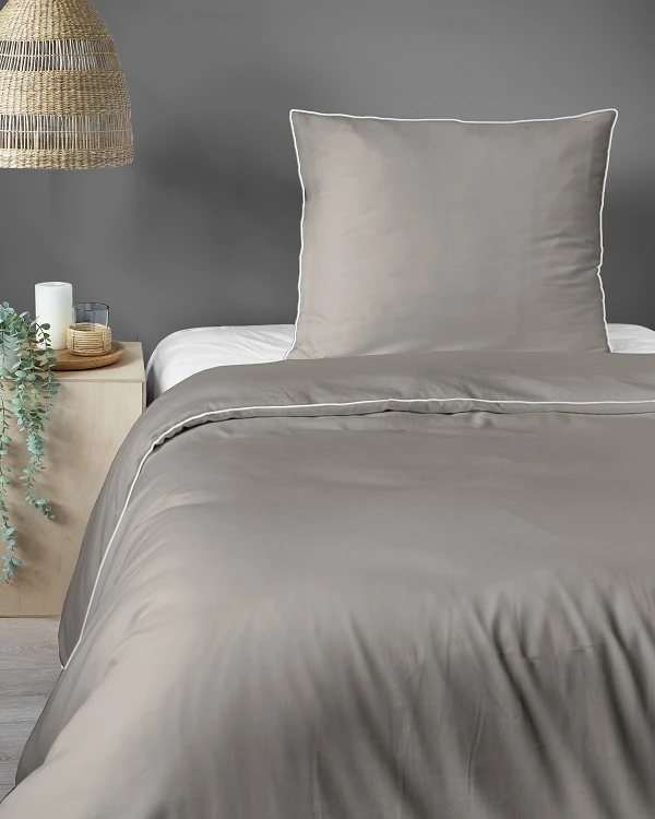 Luskusowa Pościel Jednokolorowa Z Lamówką Makosatyna 140x200 cm. Beżowa