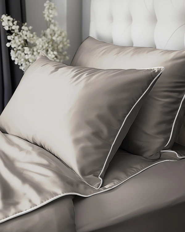 Luskusowa Pościel Jednokolorowa Z Lamówką Makosatyna 220x200 cm. Beżowa