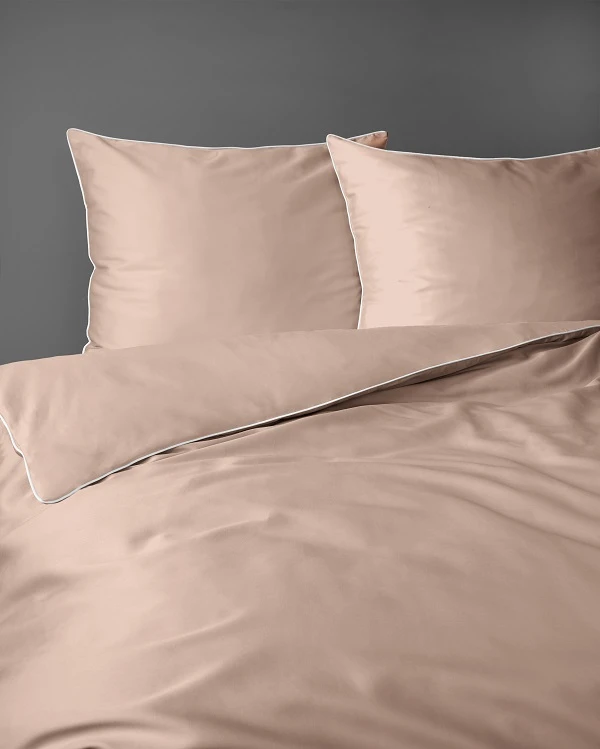 Luskusowa Pościel Jednokolorowa Z Lamówką Makosatyna 220x200 cm. Brzoskwinia