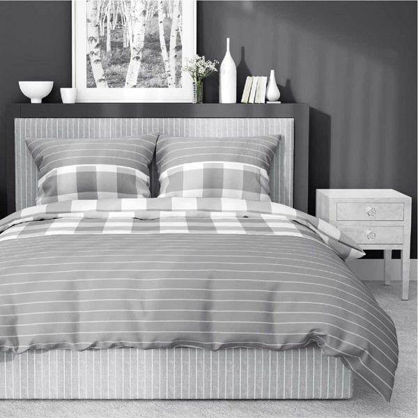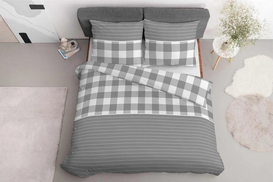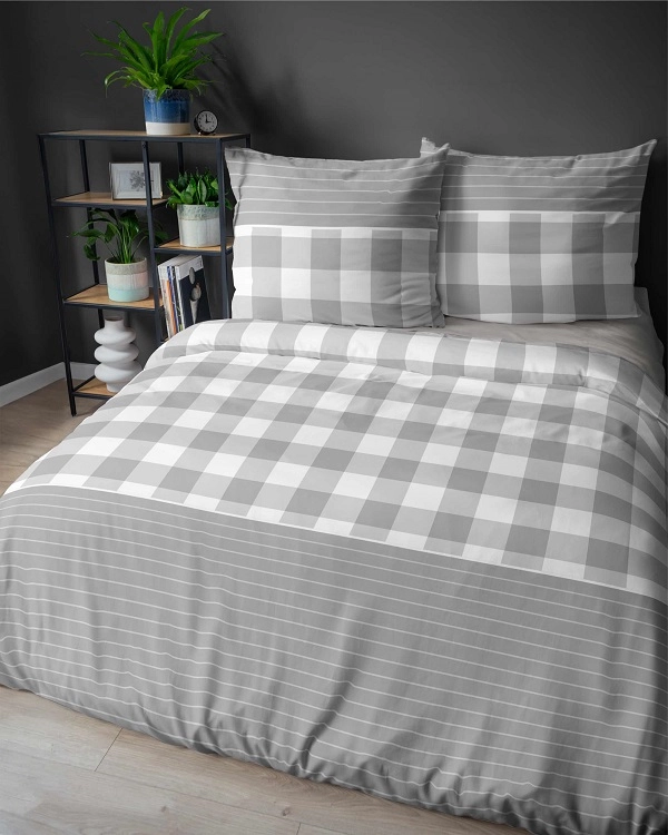 Pościel Bawełna Satynowa 220x200 cm. Biała Szara Krata 5083-B