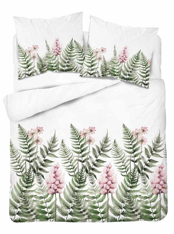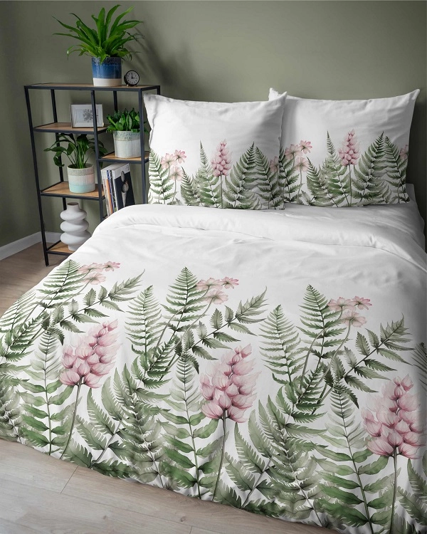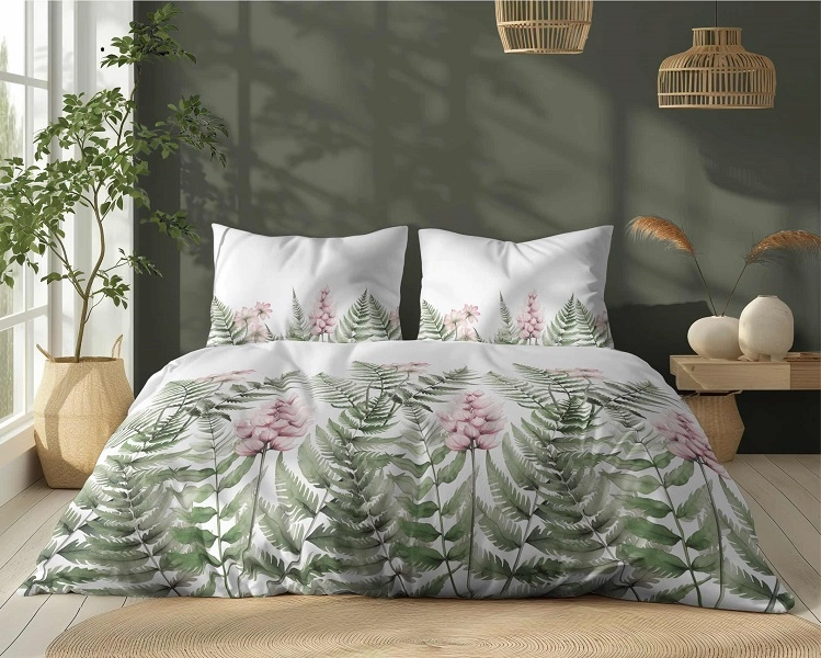 Komplet Pościeli Bawełnianej 220x200 BAWEŁNA 100 % Biała Zielone Liście 5248-A