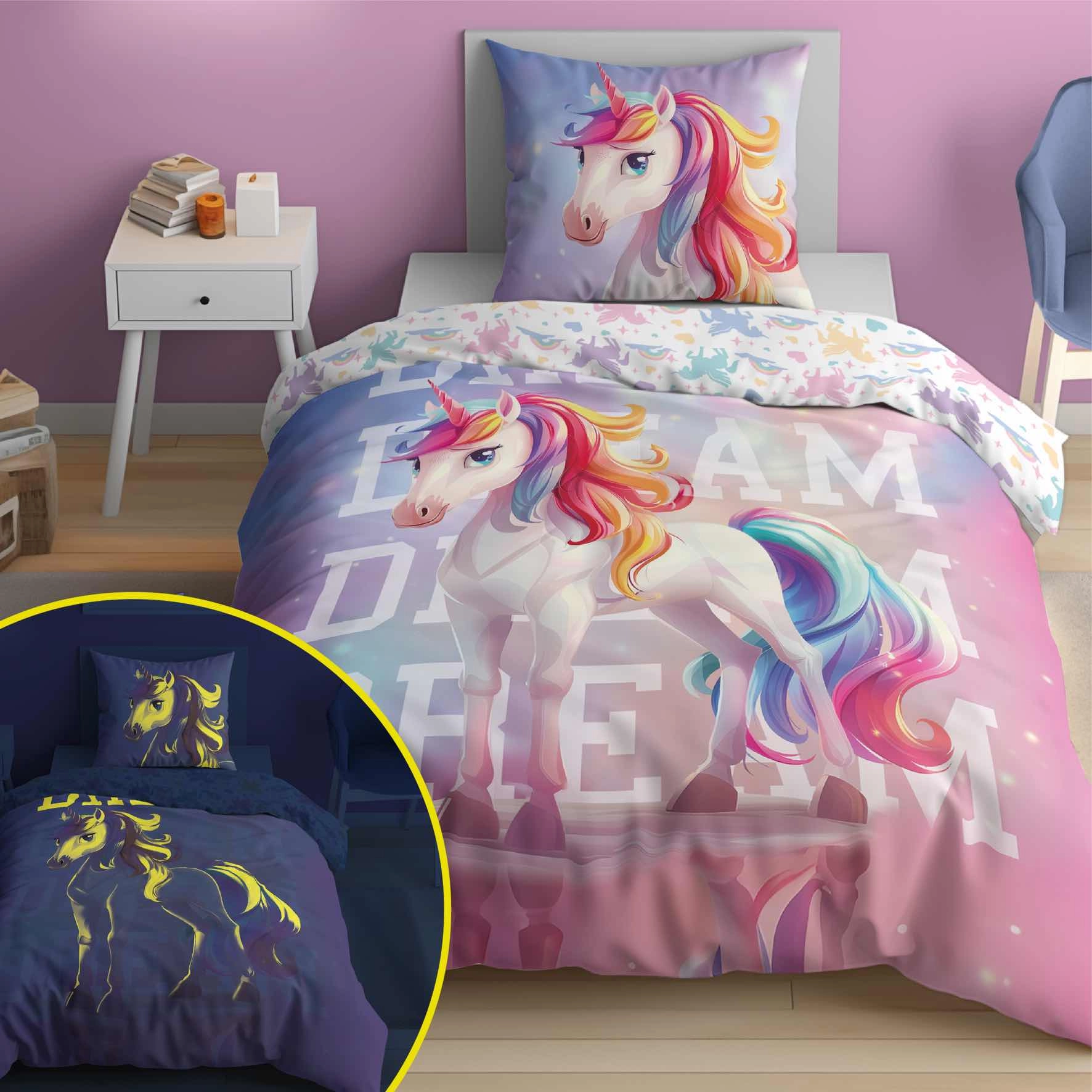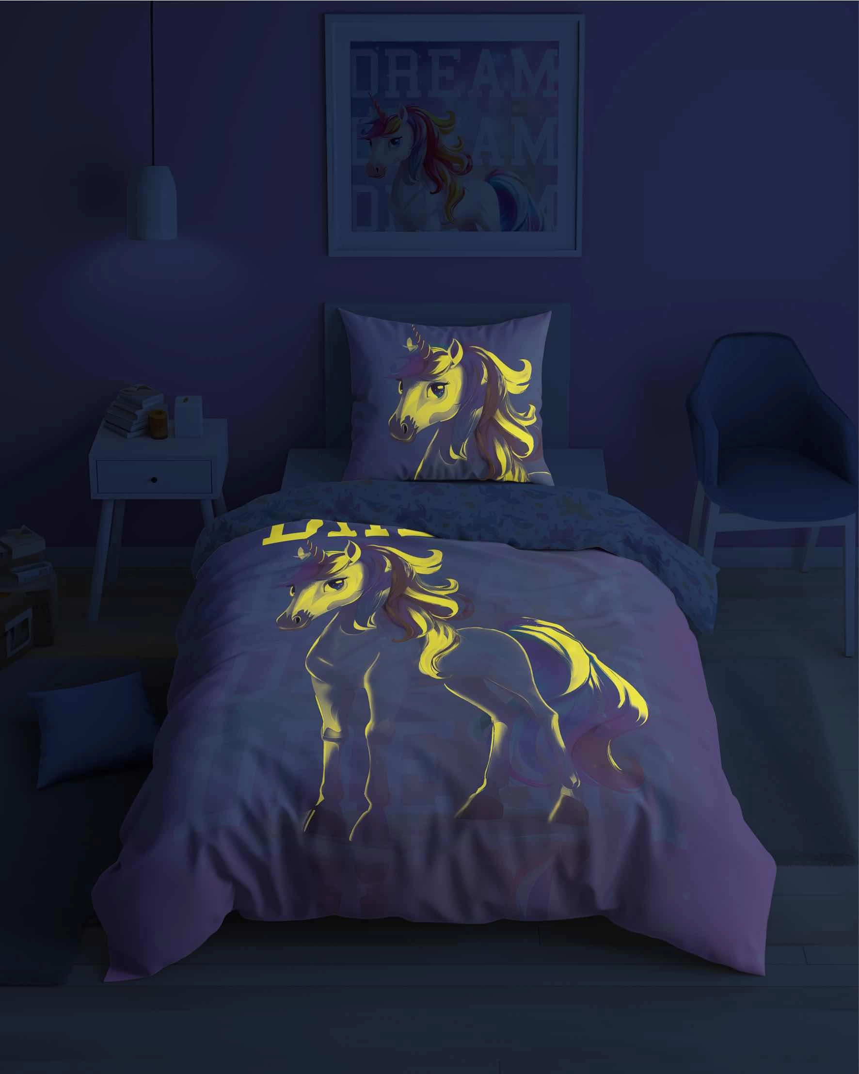 Pościel Dziecięca Świecąca W Ciemności 160x200 cm. Jednorożec 5208