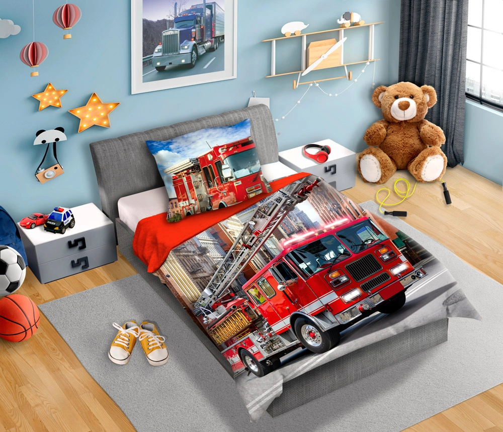 Pościel Dziecięca Wóz Strażacki 160x200 BAWEŁNA 100 % FAR-001