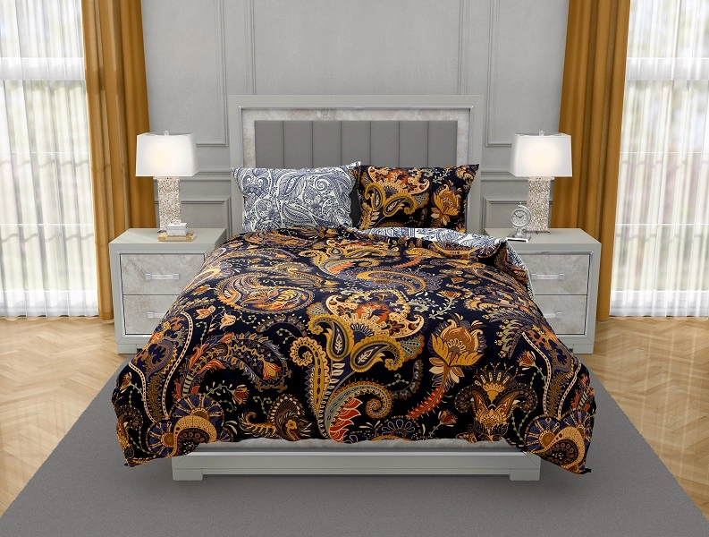 Luksusowa Pościel Z Bawełny Satynowej Druk Cyfrowy 160x200 cm. Czarna Złota Ornament 001