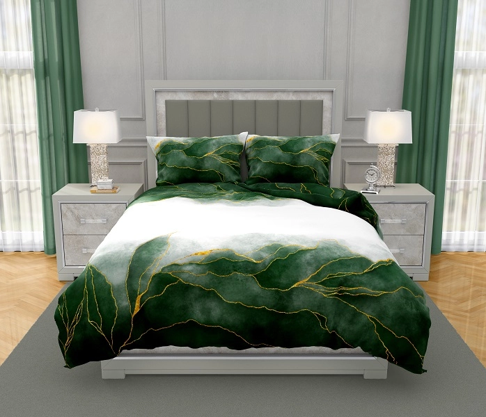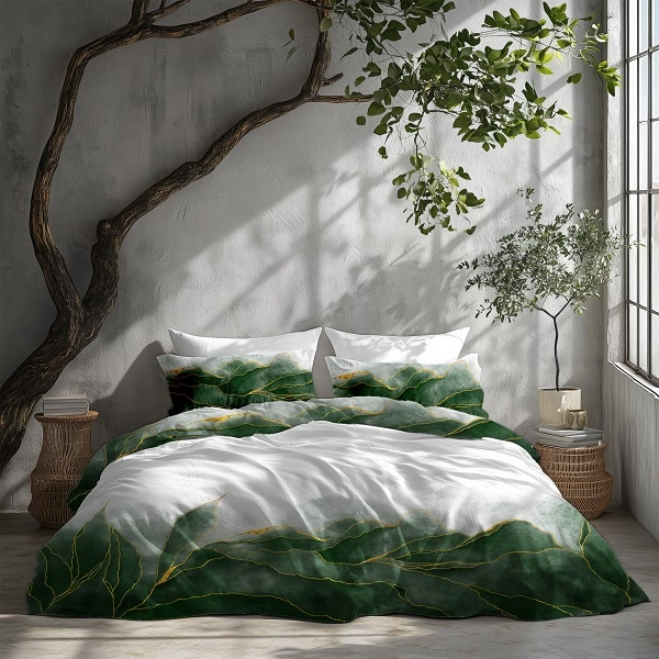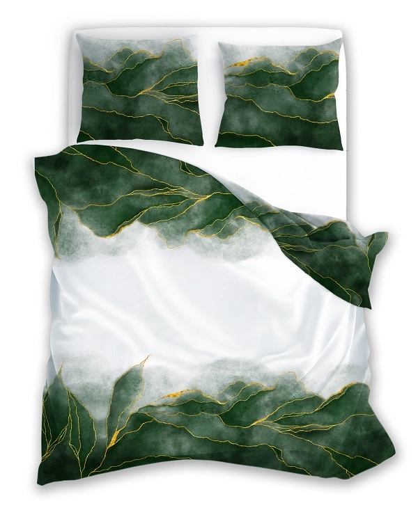 Luksusowa Pościel Z Bawełny Satynowej Druk Cyfrowy 220x200 cm. Biała Zielona Liście 016