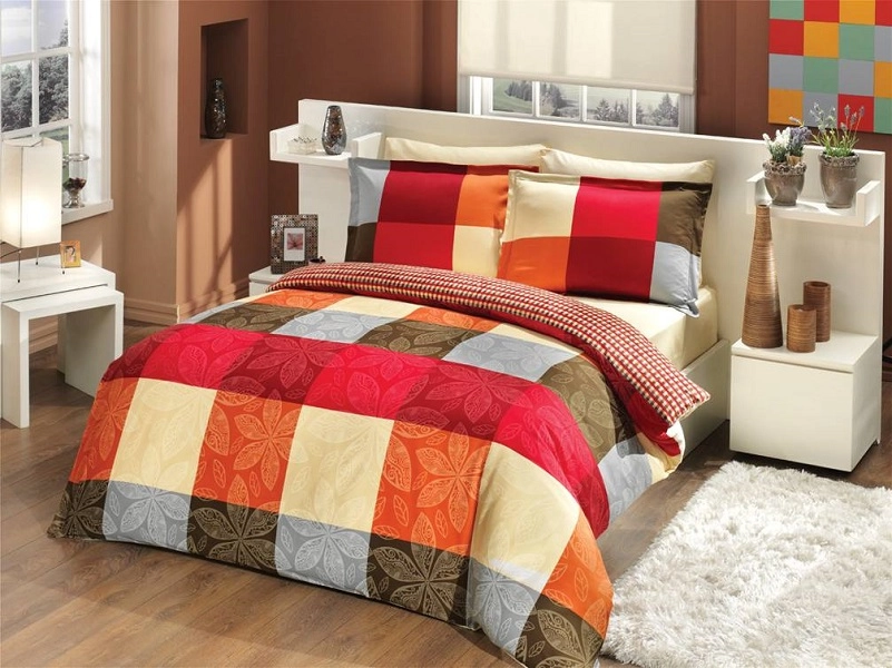 Luksusowa Pościel Z Bawełny Satynowej 160x200 cm. Kratka