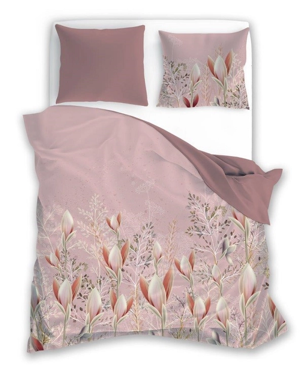 Luksusowa Pościel Z Bawełny Satynowej 220x200 cm. Pudrowy Róż Kwiaty 024