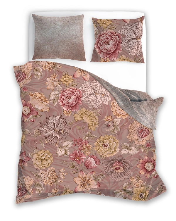 Luksusowa Pościel Z Bawełny Satynowej Druk Cyfrowy 140x200 cm. Pudrowy Róż Kwiaty 019