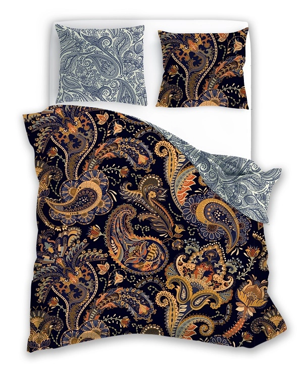 Luksusowa Pościel Z Bawełny Satynowej Druk Cyfrowy 140x200 cm. Czarna Złota Ornament 001