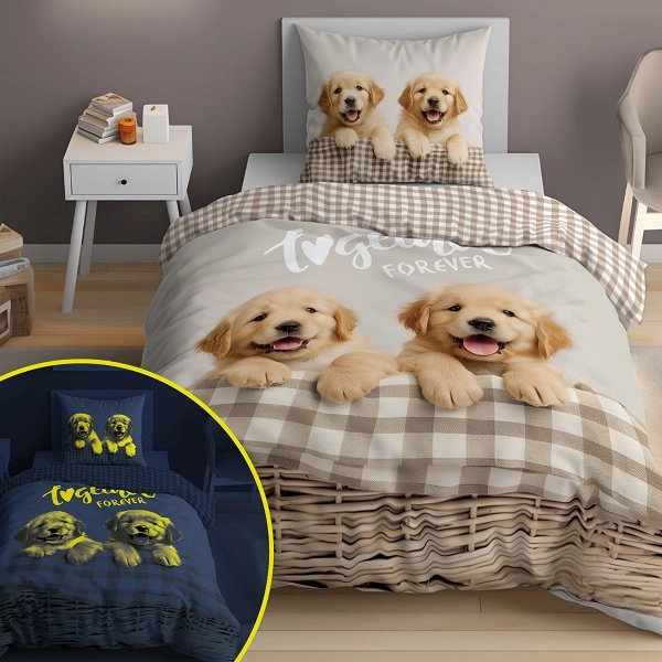 Pościel Dziecięca Świecąca W Ciemności 160x200 cm. Pieski 5553