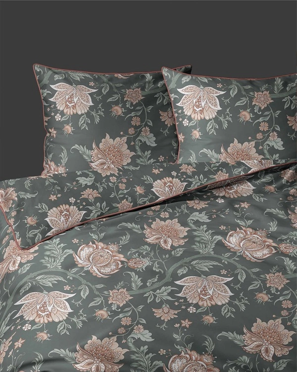 Pościel Lame Percale 160x200 cm to ekskluzywny komplet wykonany w 100% z najwyższej jakości bawełny perkalowej. Dzięki gęstemu splotowi tkanina jest wyjątkowo trwała i odporna, przewyższając pod tym względem standardowe materiały pościelowe. Jej powierzchnia jest jedwabiście gładka, zapewniając niezrównany komfort podczas snu. Wzornictwo pościeli zachwyca subtelnym motywem kwitnących łąk, który harmonizuje z estetyką ekologiczną, a jednocześnie doskonale komponuje się z wnętrzami w stylu klasycznym lub glamour. Unikalnym akcentem jest elegancka, płaska lamówka, idealnie współgrająca z tłem i wzorem. Poszewki na poduszki zdobione są delikatnym przeszyciem, które nadaje im wyrafinowanego charakteru i podkreśla luksusowy styl kompletu.