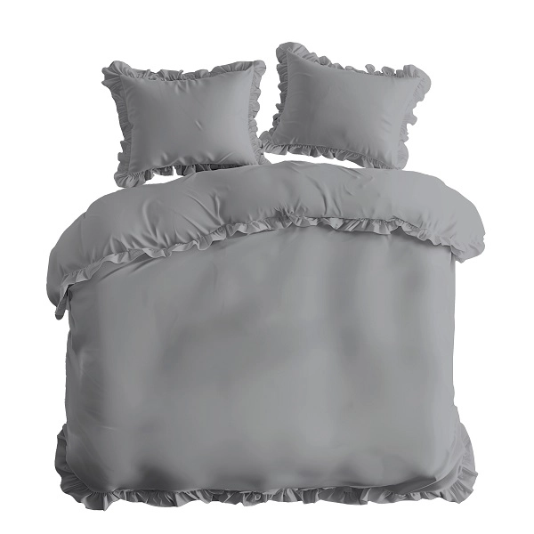 Luksusowa Pościel Z Falbaną 160x200 cm. Bawełna 100% Jasny Szary