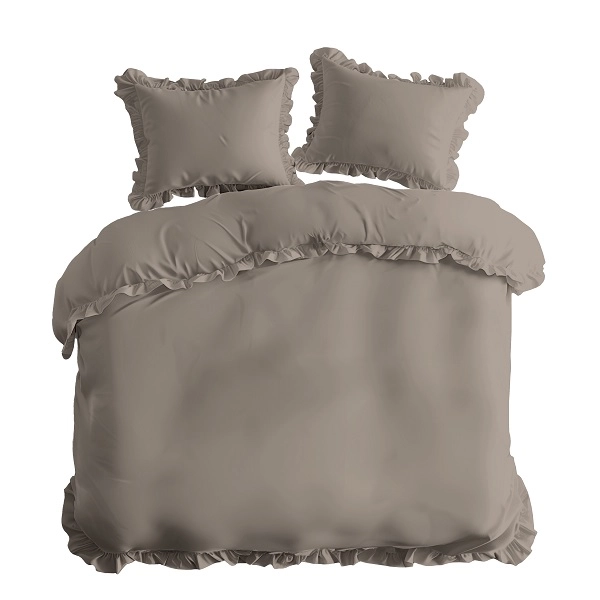 Luksusowa Pościel Z Falbaną 160x200 cm. Bawełna 100% Szaro Beżowy
