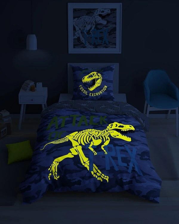 Pościel Świecąca w Ciemności z Motywem Dinozaura T-Rex